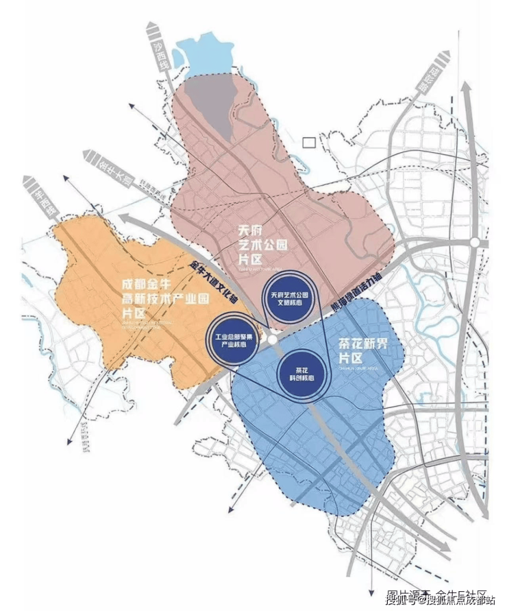 以新金牛公园为中心的茶店子-花照壁一线,官方称“茶花新城”规划面积约为0.98平方公里。以金牛大路茶店子路为中轴线,与三环外的金牛高新区、天公园片区互为犄角,一起构成了金牛很重要的黄金三角区域。